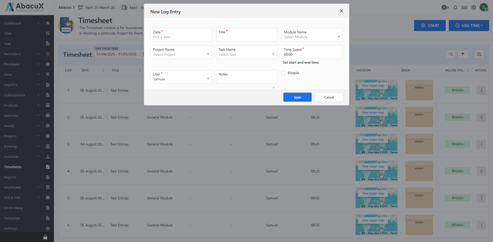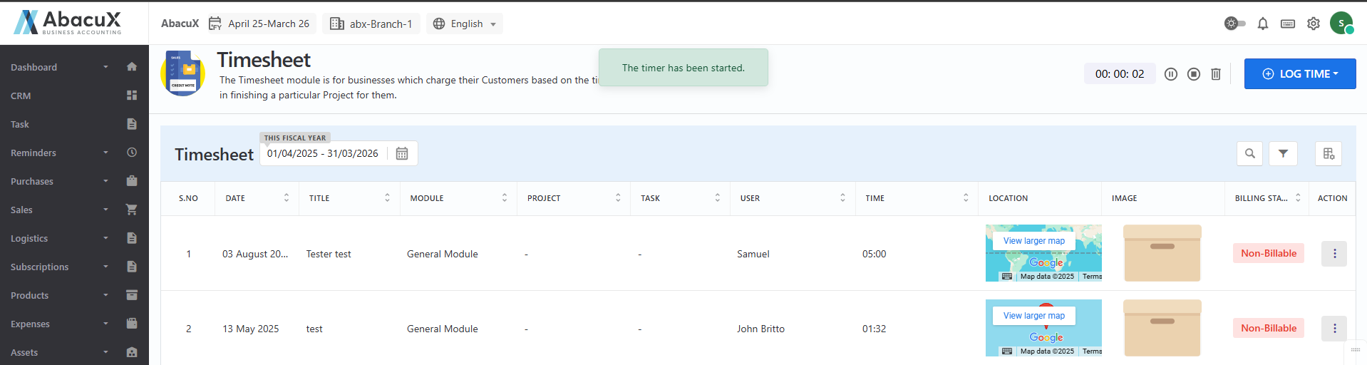 The Timesheets module is designed to help businesses track the time spent by employees or teams on specific tasks, projects, or customer assignments. It is particularly useful for service-based businesses that bill clients based on hours worked or require time tracking for productivity, payroll, or project management purposes.