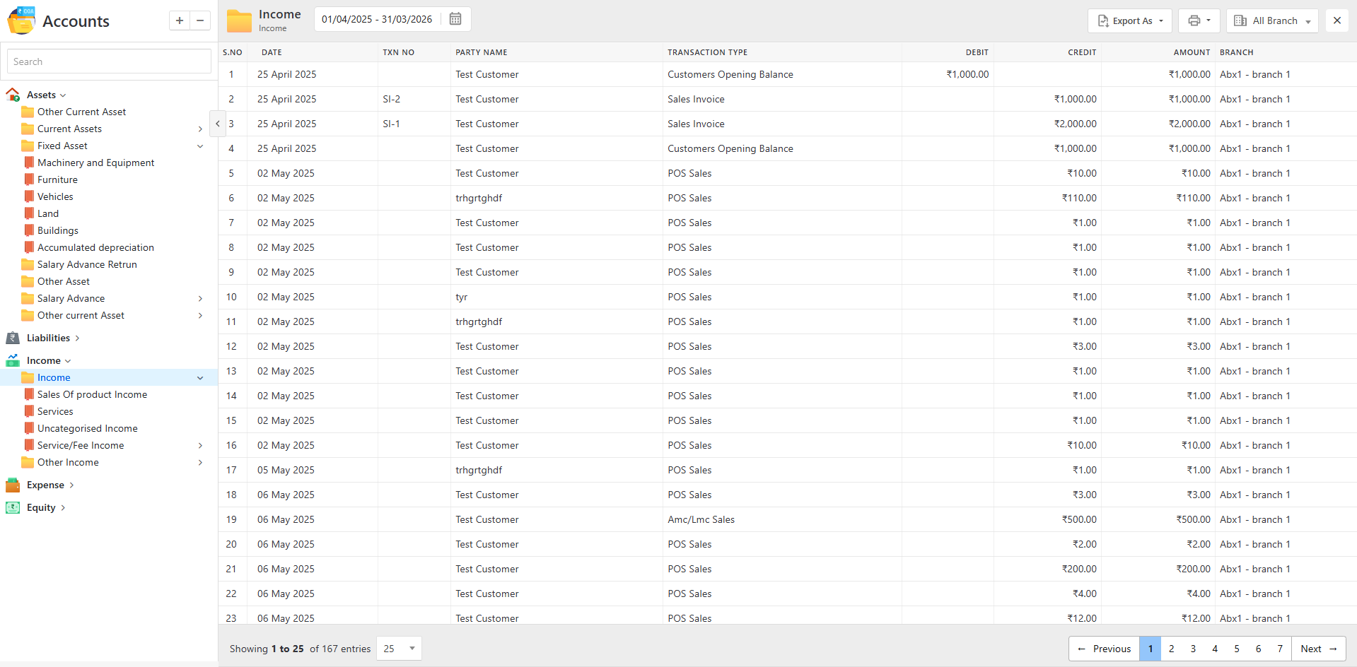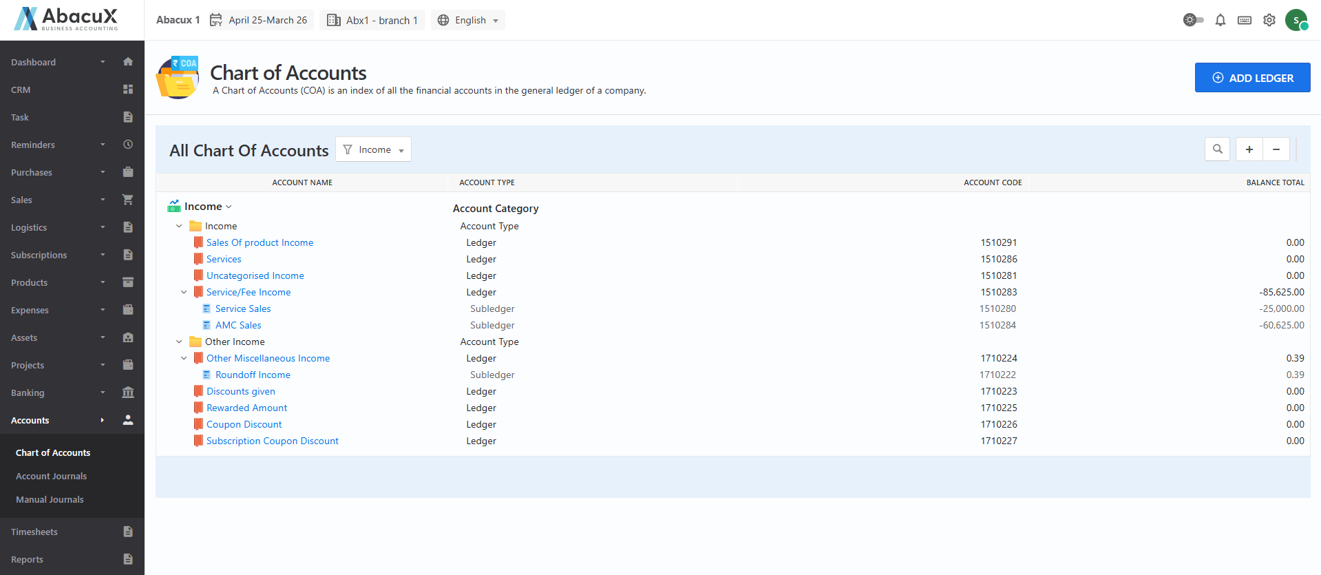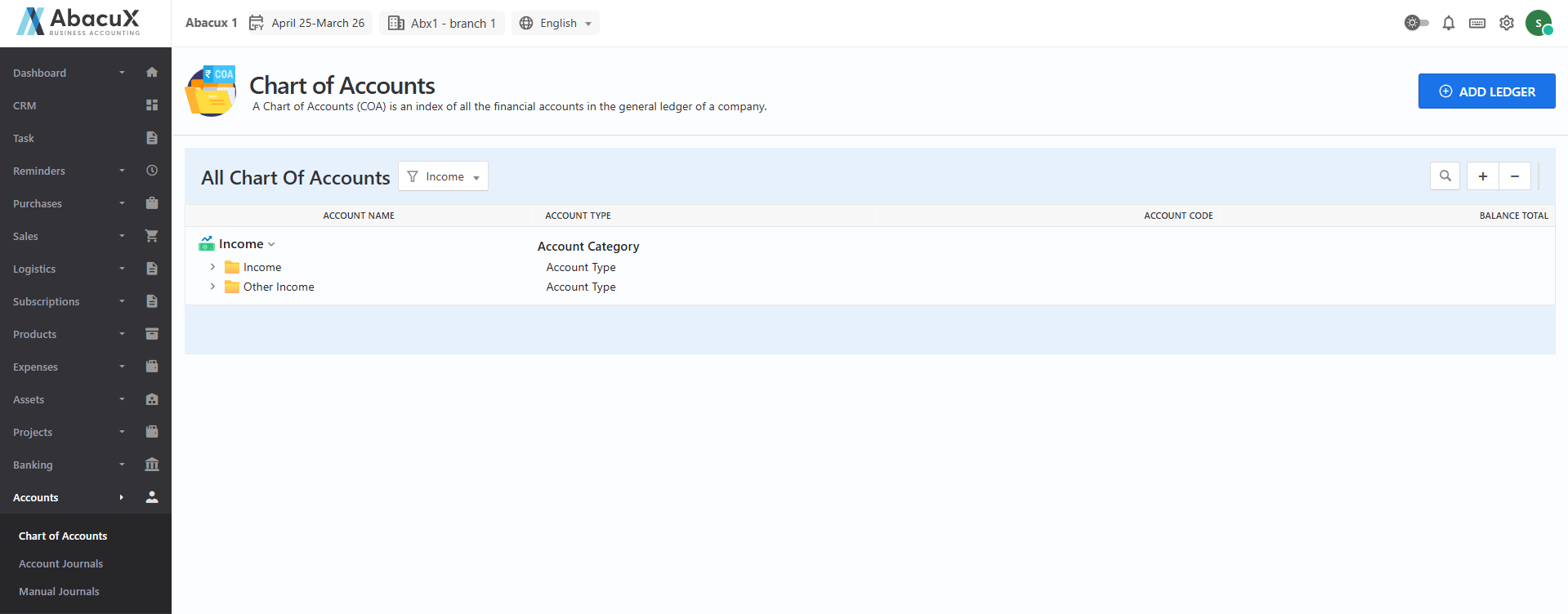 Clicking on an Account Type or Ledger will redirect you to the details page.
