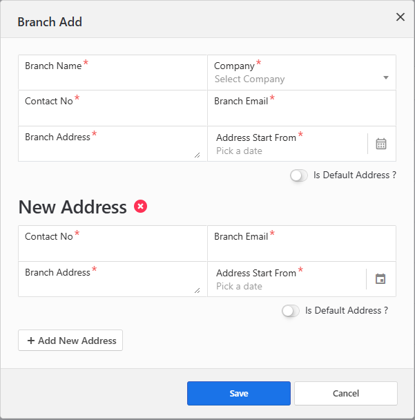 If you wish to add a new address for the branch, click the "Add New Address" button within the branch popup.