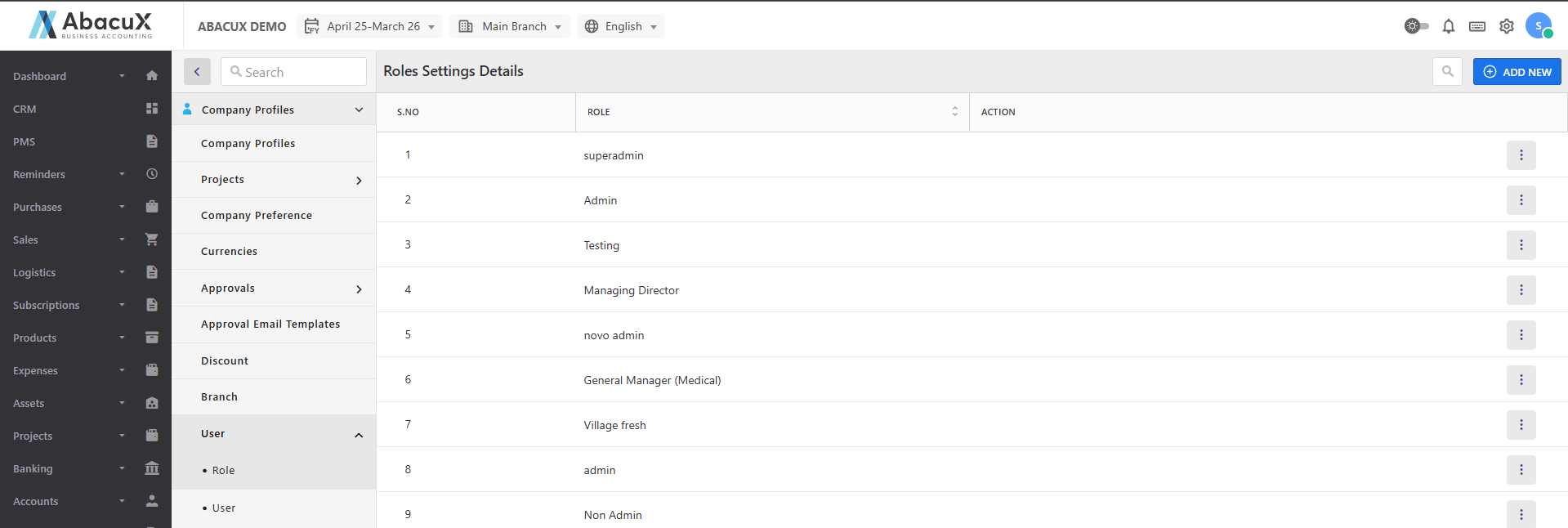 - Navigate to the Role section under Company Profiles in the Settings menu.