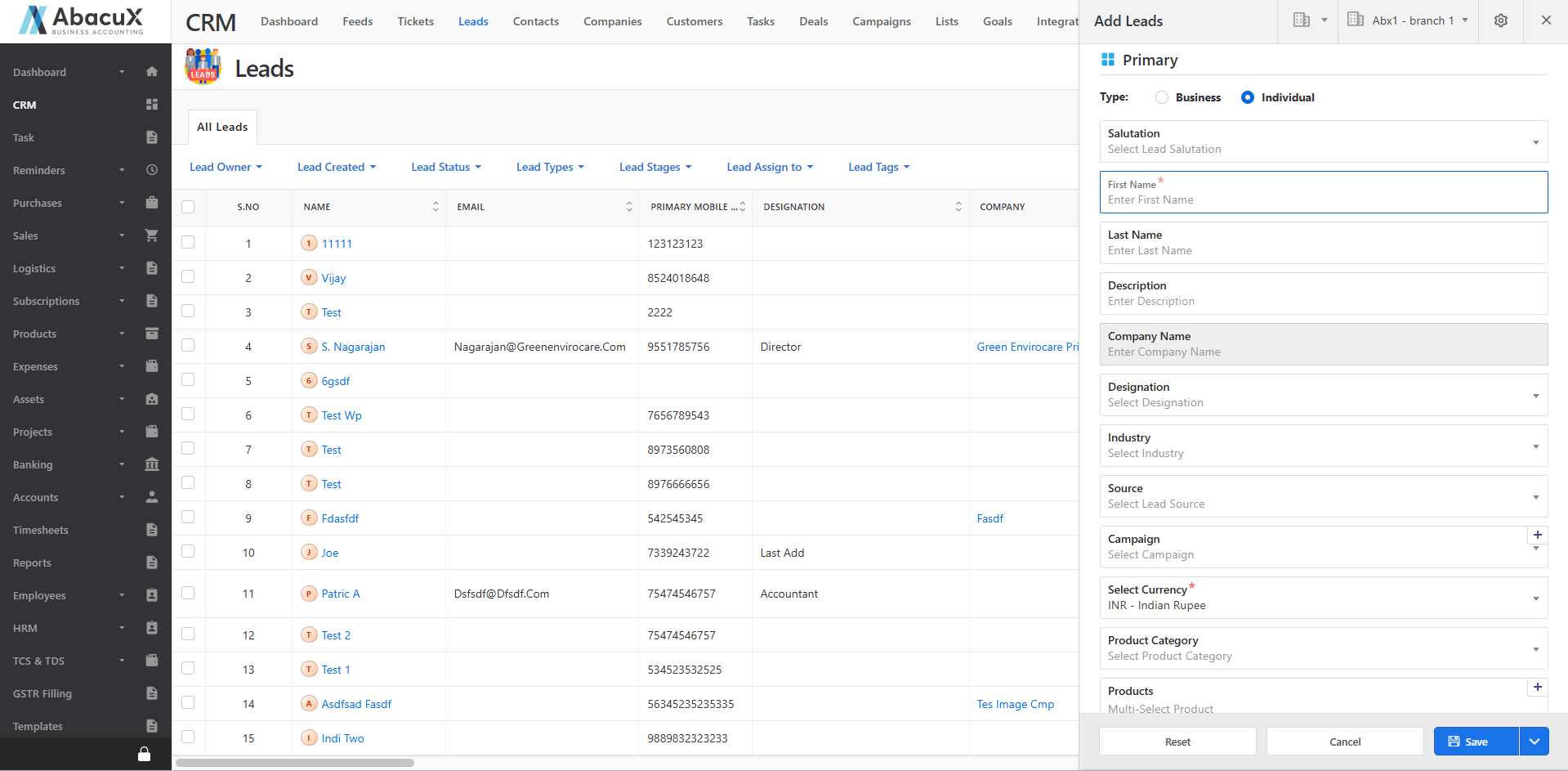 The Leads module allows users to manage and track potential customers efficiently, from initial inquiry to conversion. This section outlines how to view, add, and organize leads within the CRM system.