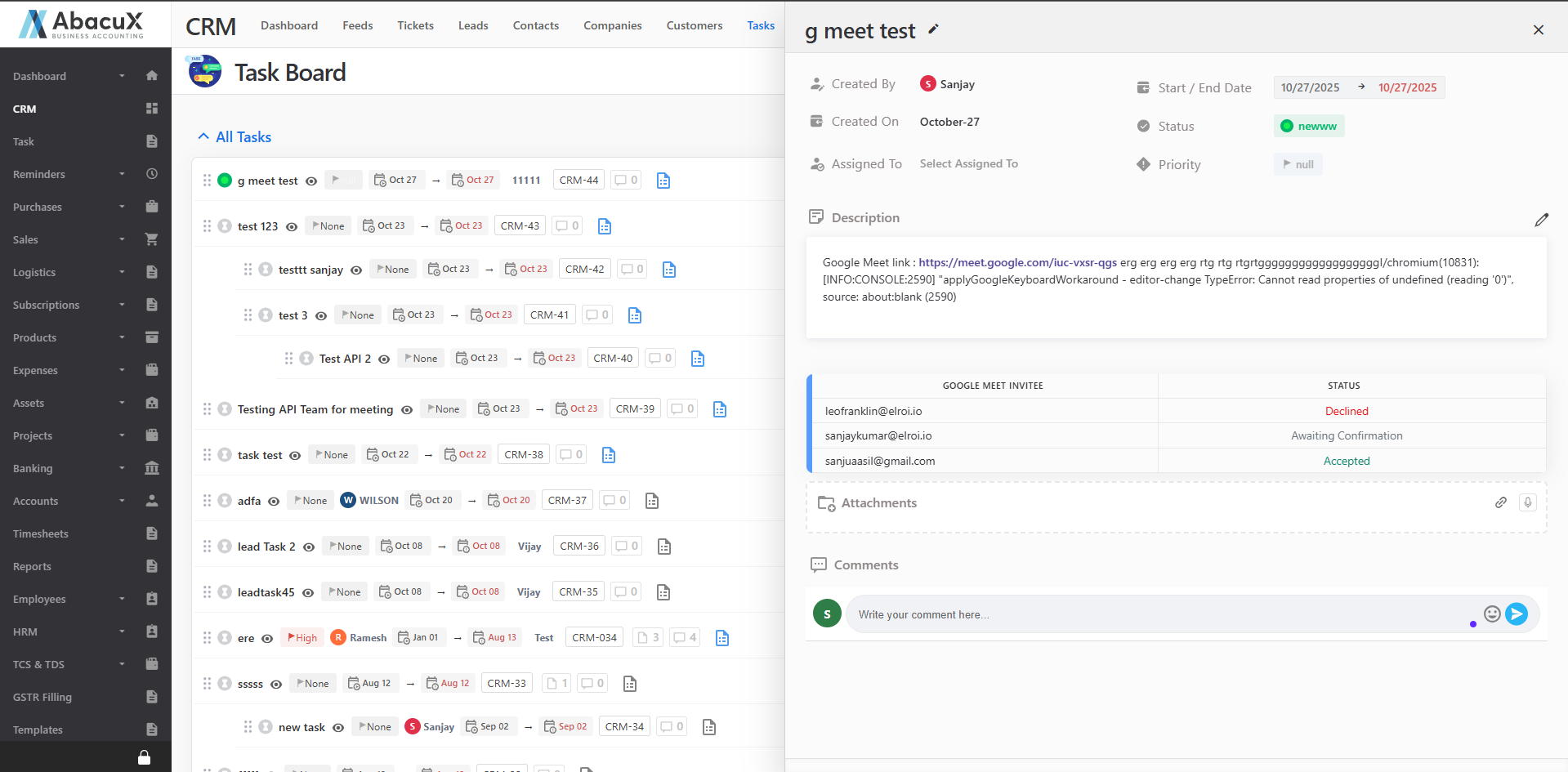 Clicking on the task name will open the detailed view screen of the selected task, displaying complete information and activity history.