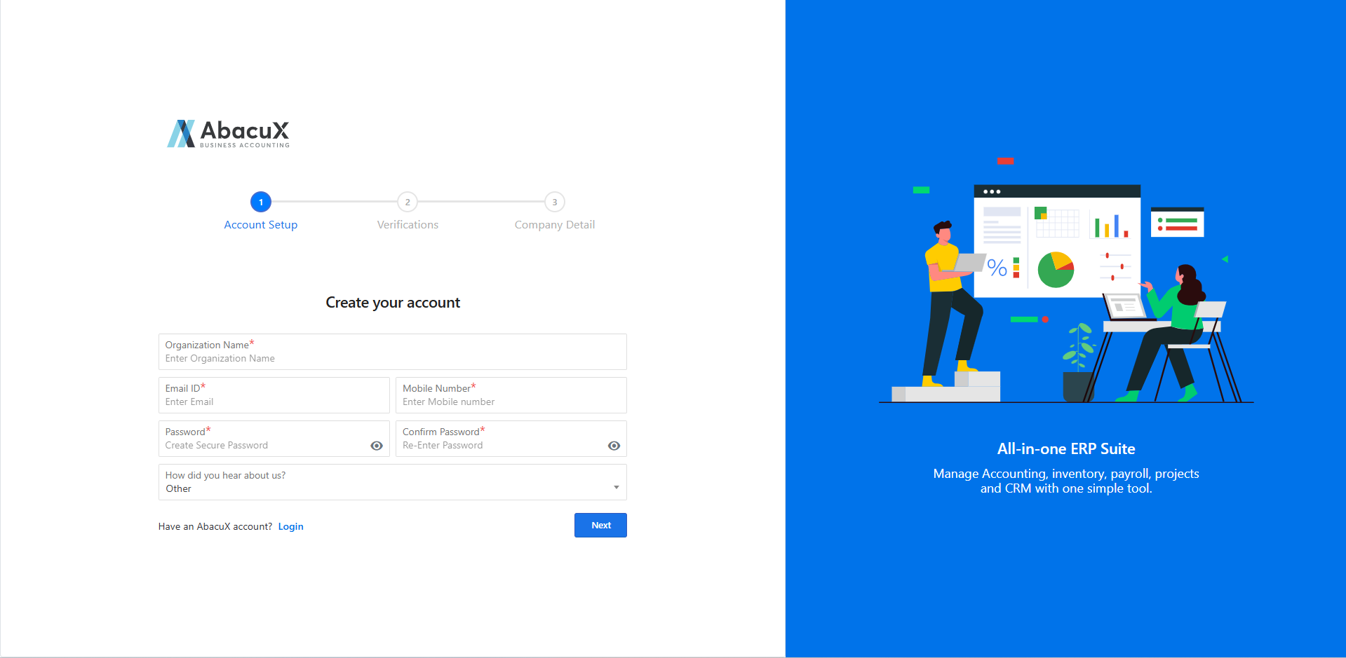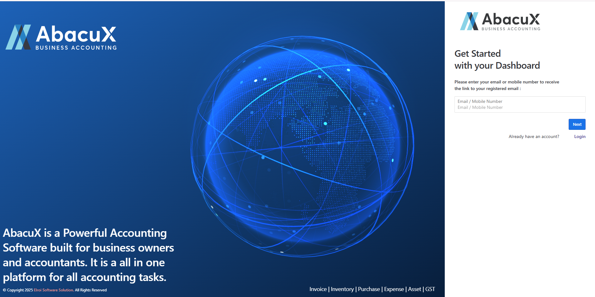 Enter your registered email address or mobile number to log in to your AbacuX account.