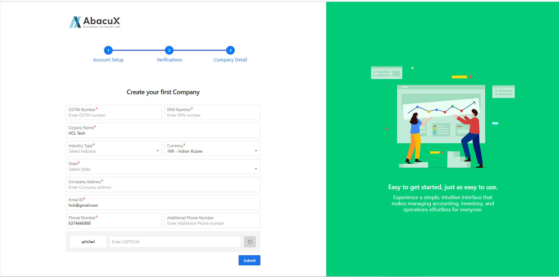 If you enter your GSTIN, your company details will be automatically fetched from the GST portal.