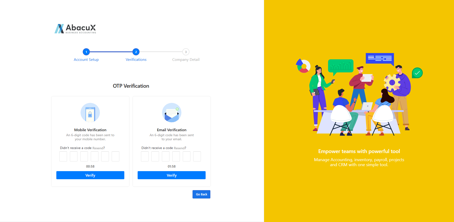 - After successfully entering the required details, you will be prompted to verify your email address and mobile number using an OTP (One-Time Password).