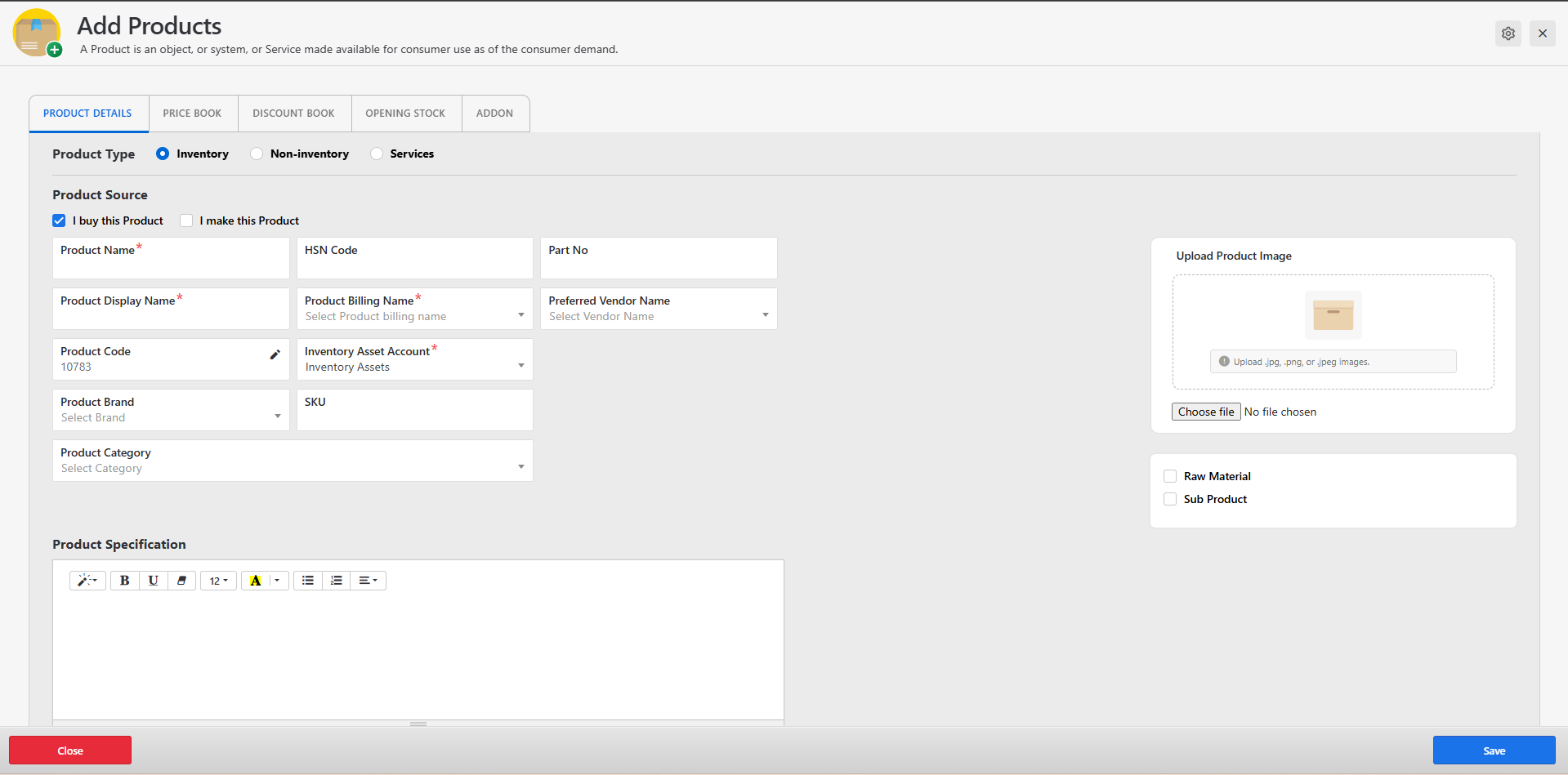 - Assign applicable tax rates and link HSN/SAC codes for compliance with regional tax regulations (e.g., GST in India).