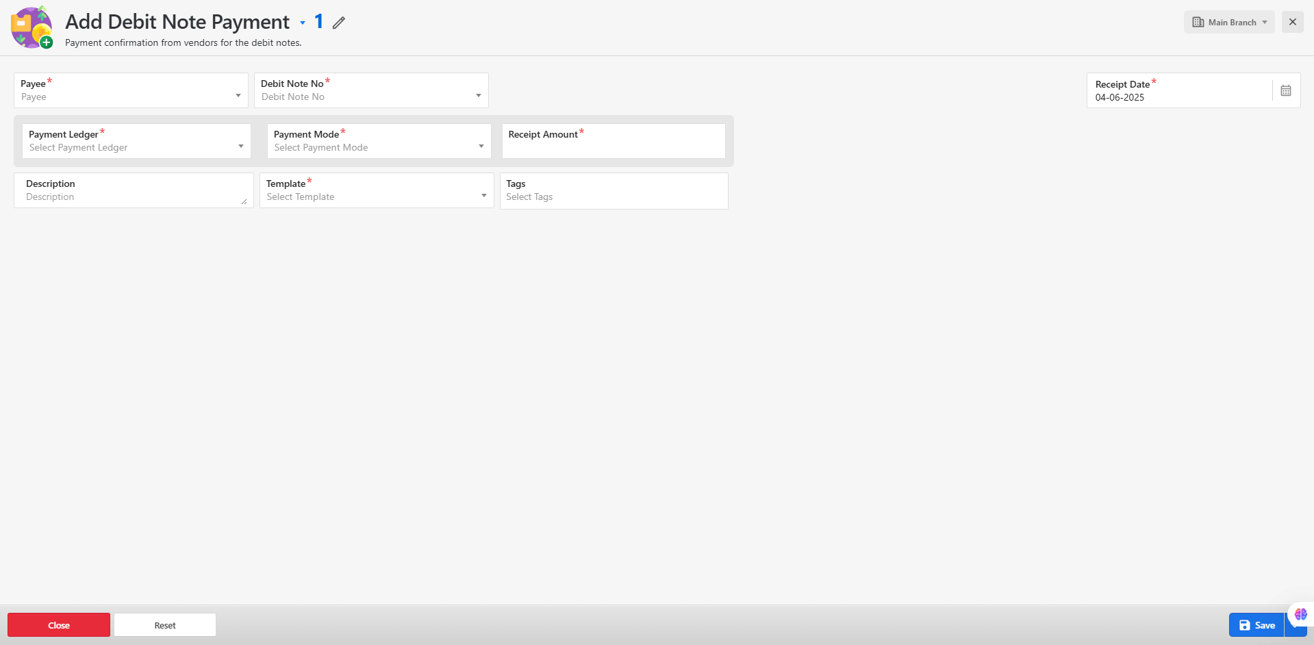 Add a New Debit Note Payment: