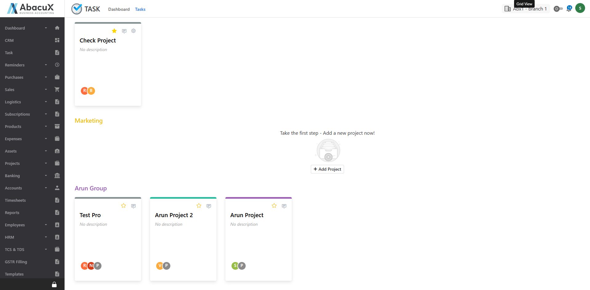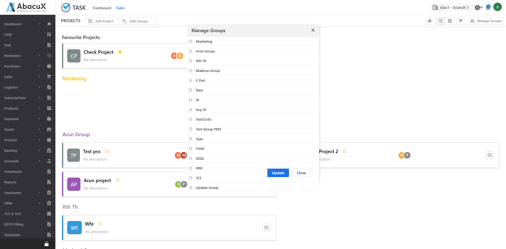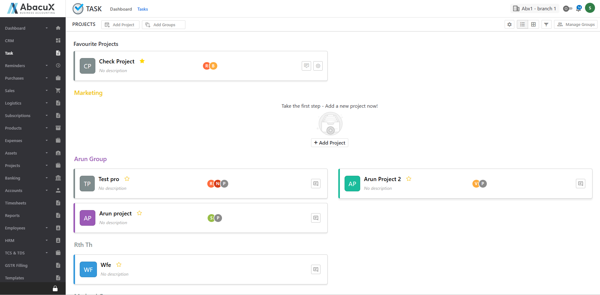 - Click on the Task option under the Task main menu to view the list of task groups.