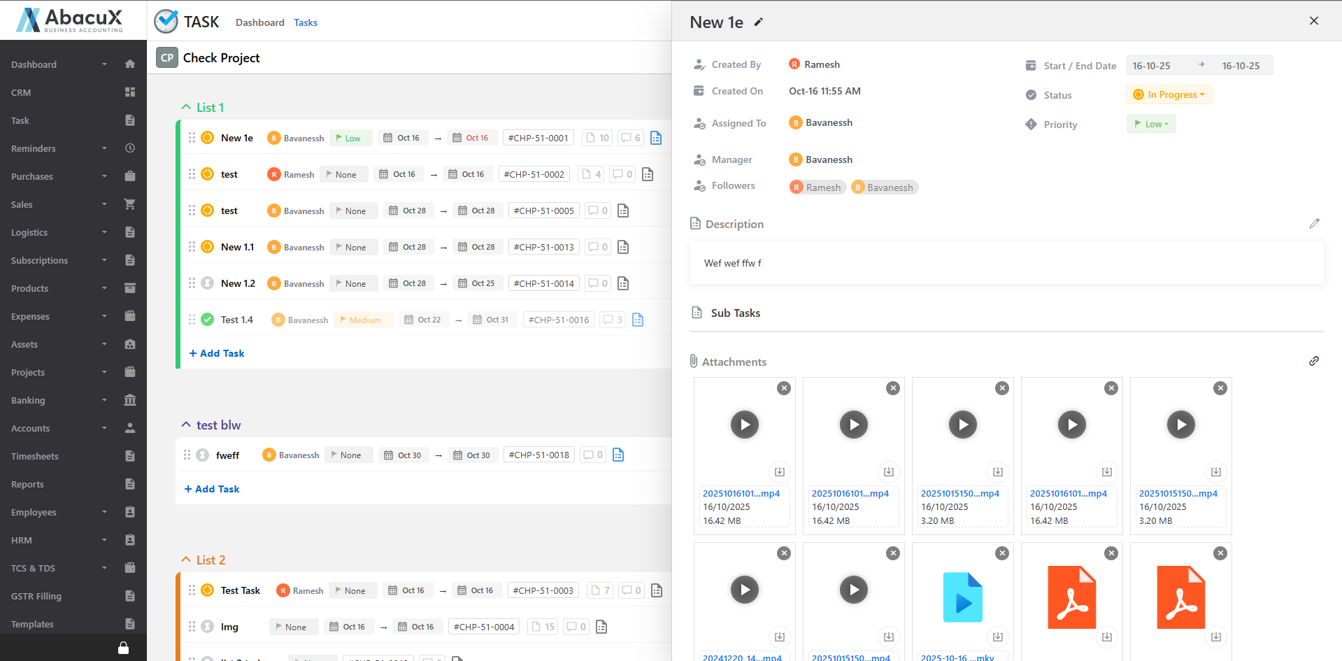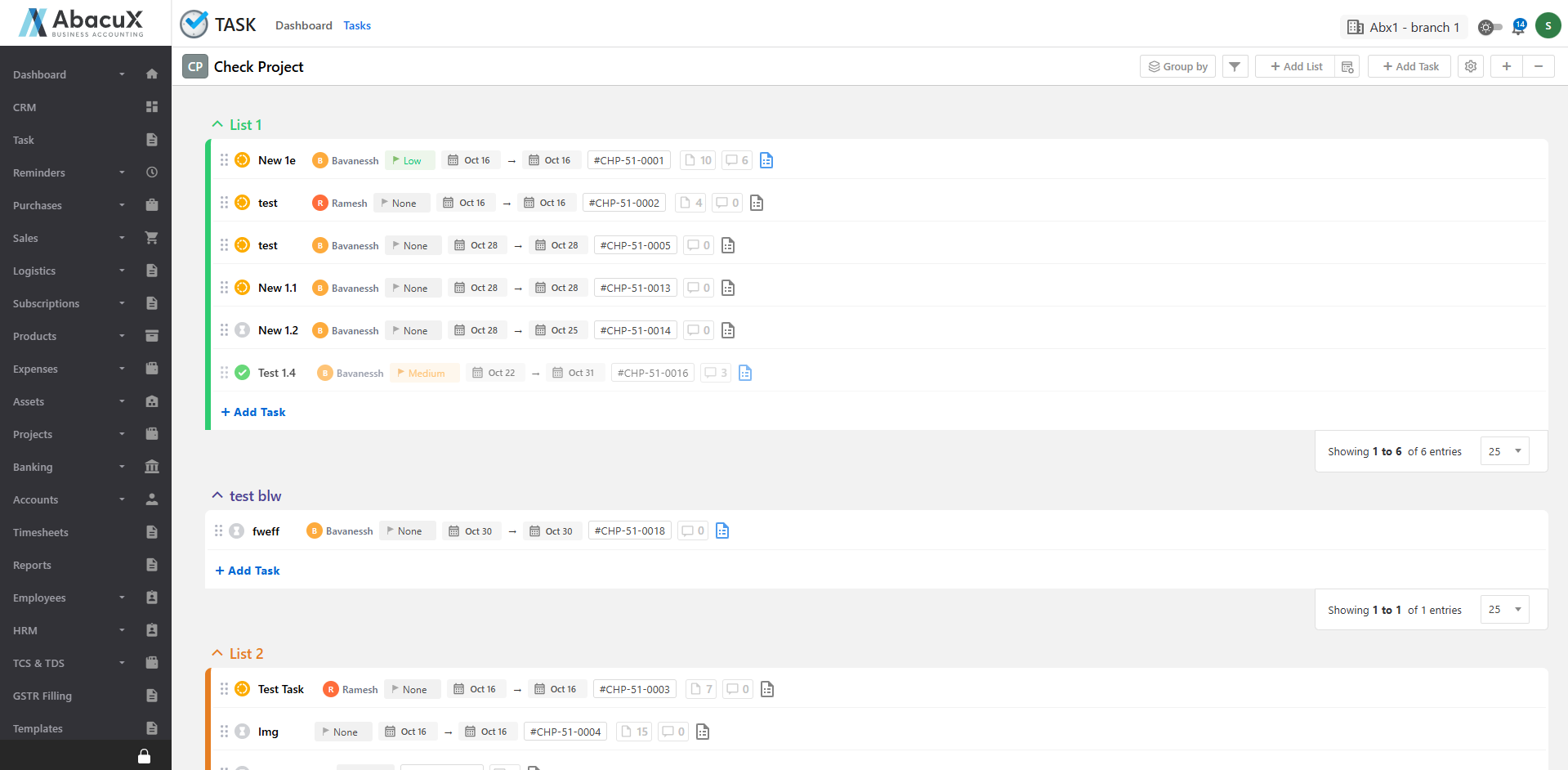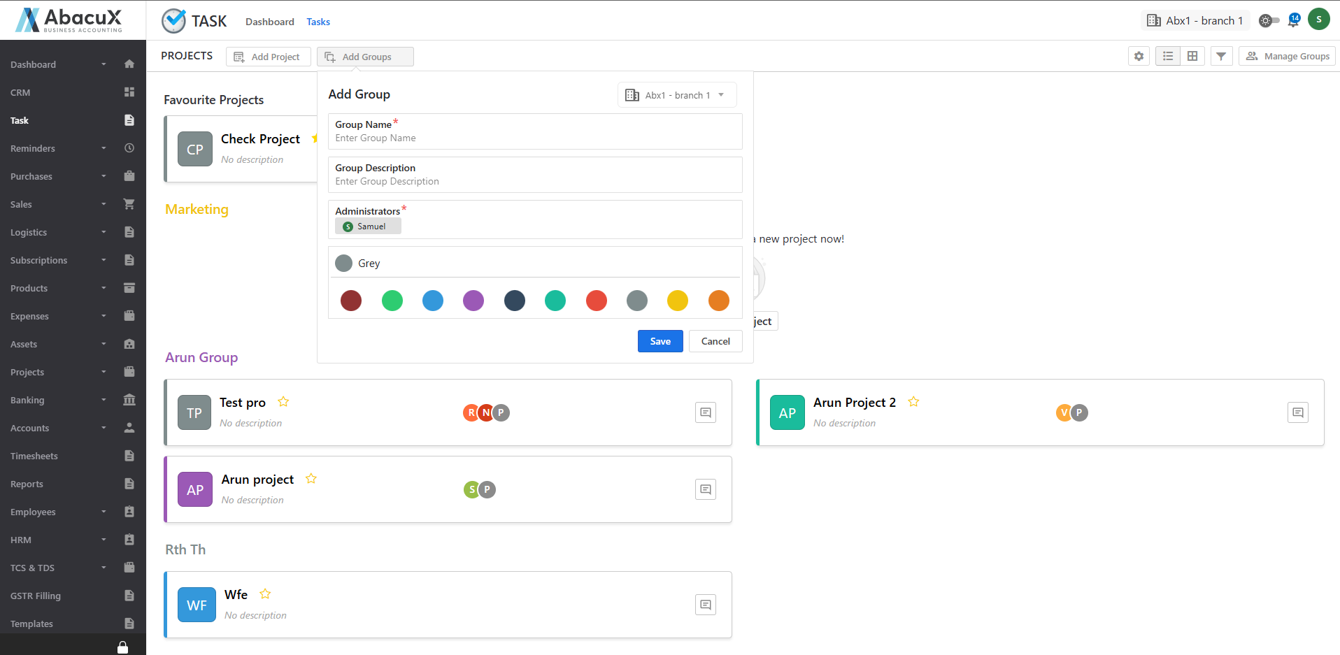- Click on the Task option under the Task main menu to view the list of task groups.