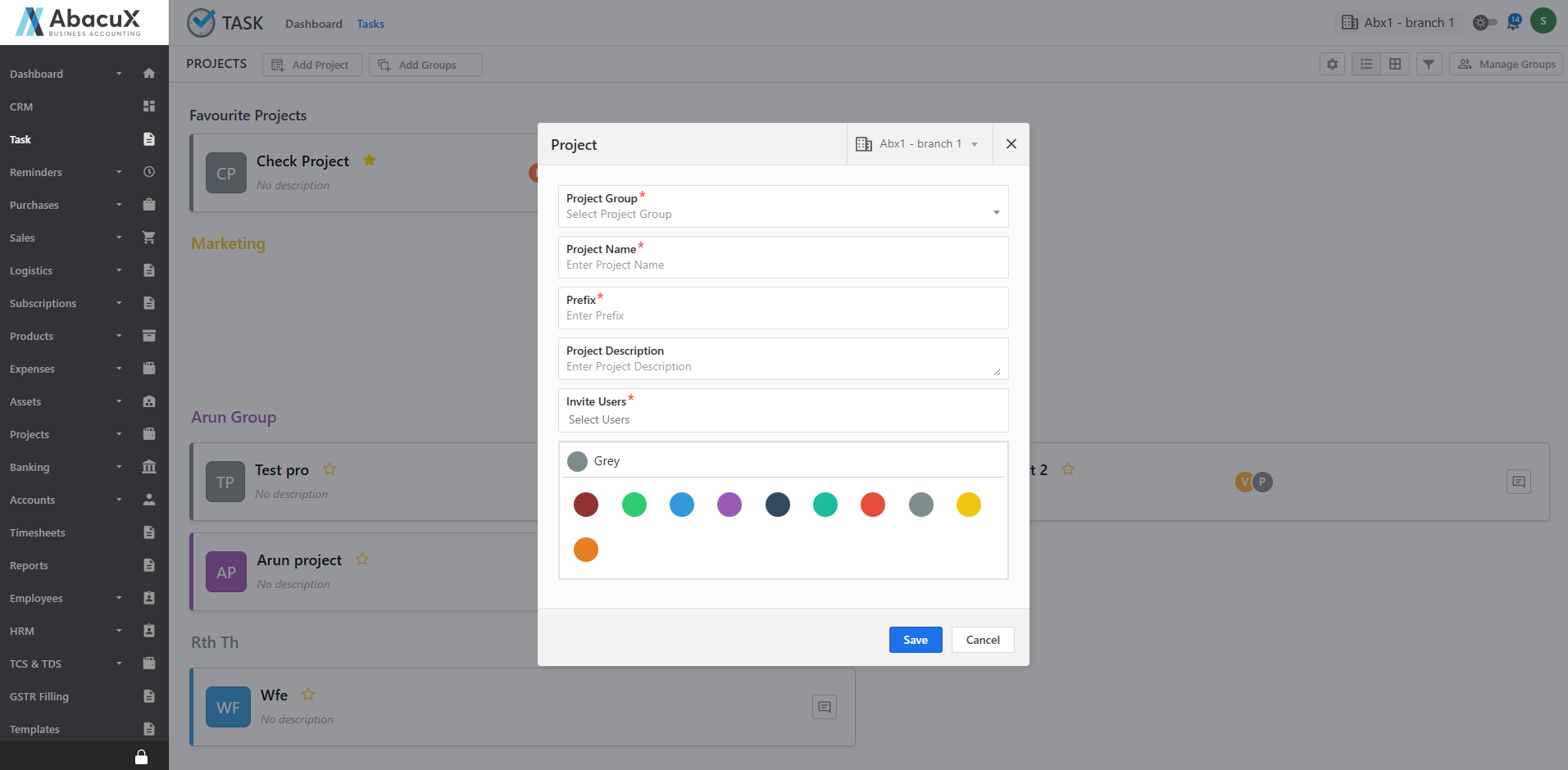 A form will open to capture the project details. Fill in the required fields and save the form to create the project.